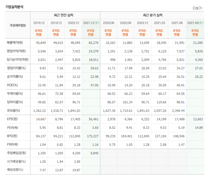 위의 표에서 금호석유의 21년도 매출액은 82,276억원이라는 것은 한해동안 벌어들인 모든 금액을 뜻하는 것이다.